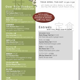 This place is a go to lunch spot in Cupertino. I'm usually here for the Tori Nanban Don as it has a lunch portion of chicken and eggplant with the usual paired sides: miso soup, salad. Value is definitely here as portions are plenty and tastes tends to be on point and consistent. Recently I got the Dry Curry Don which is also good but does get repetitive after a few bites being the same ground meat/rice/curry. Overall the experience would be food: 4 service: 5 ambiance: 5 damn solid